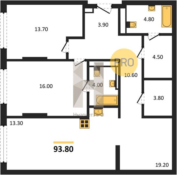 | Общая площадь: | 93.80 м2 |