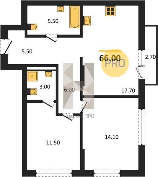 Квартира: 2 к 66,00 кв.м., 5 этаж в комплексе Квартал Траектория, 1 очередь, корп.1.2, сдача: 1кв. , этажей: 16, адрес Екатеринбург г., Билимбаевская ул., д. 1.2, Застройщик: Брусника.