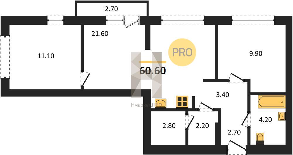 Квартира: 2 к 60,60 кв.м., 2 этаж в комплексе Квартал Траектория, 1 очередь, корп.1.2, сдача: 1кв. , этажей: 16, адрес Екатеринбург г., Билимбаевская ул., д. 1.2, Застройщик: Брусника.