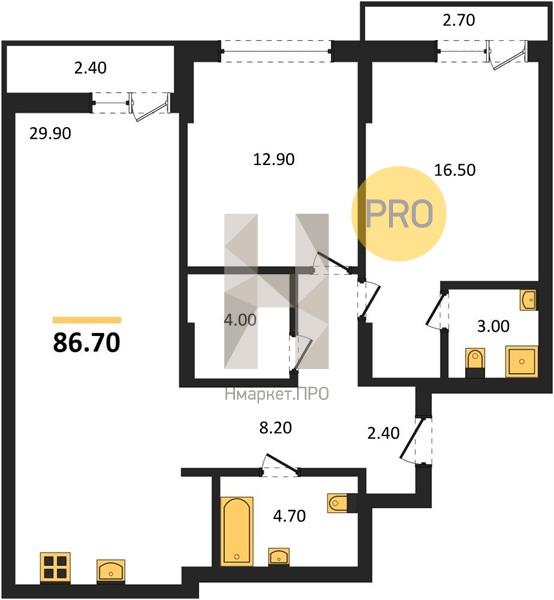 | Общая площадь: | 86.70 м2 |