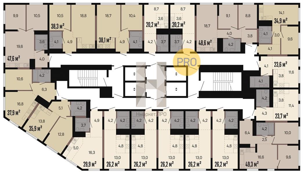 Квартира: 2 к 48,60 кв.м., 24 этаж в комплексе Шарташ Парк, 1 очередь, корп.1, сдача: 4кв. , этажей: 30, адрес Екатеринбург г., Блюхера ул., , Застройщик: PRINZIP недвижимость.