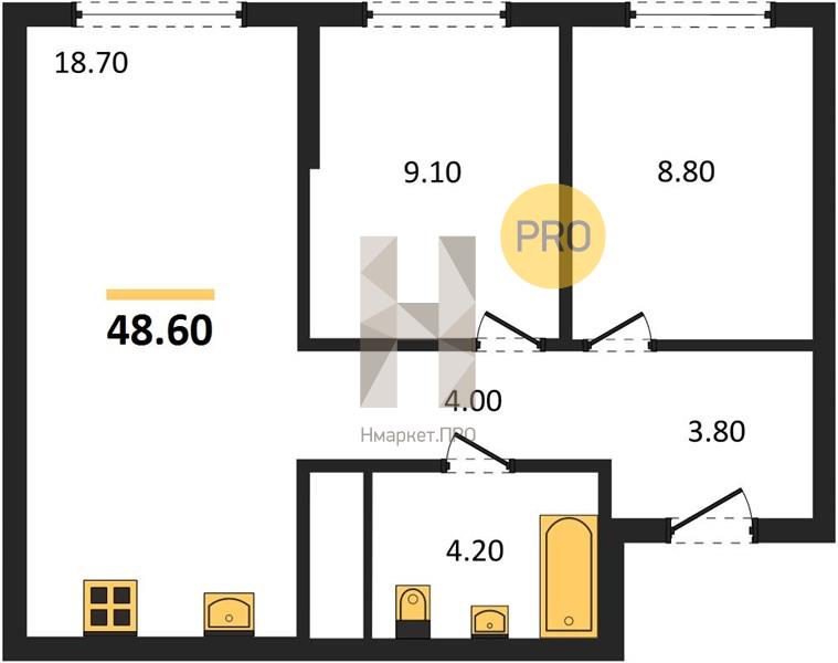 | Общая площадь: | 48.60 м2 |