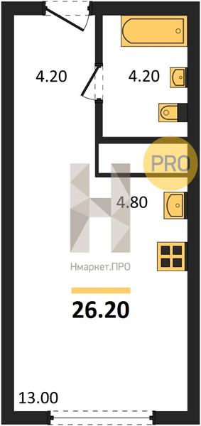 Студия: 26,20 кв.м., 26 этаж в комплексе Шарташ Парк, 1 очередь, корп.1, сдача: 4кв. , этажей: 30, адрес Екатеринбург г., Блюхера ул., , Застройщик: PRINZIP недвижимость.