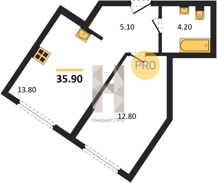 | Общая площадь: | 35.80 м2 |
