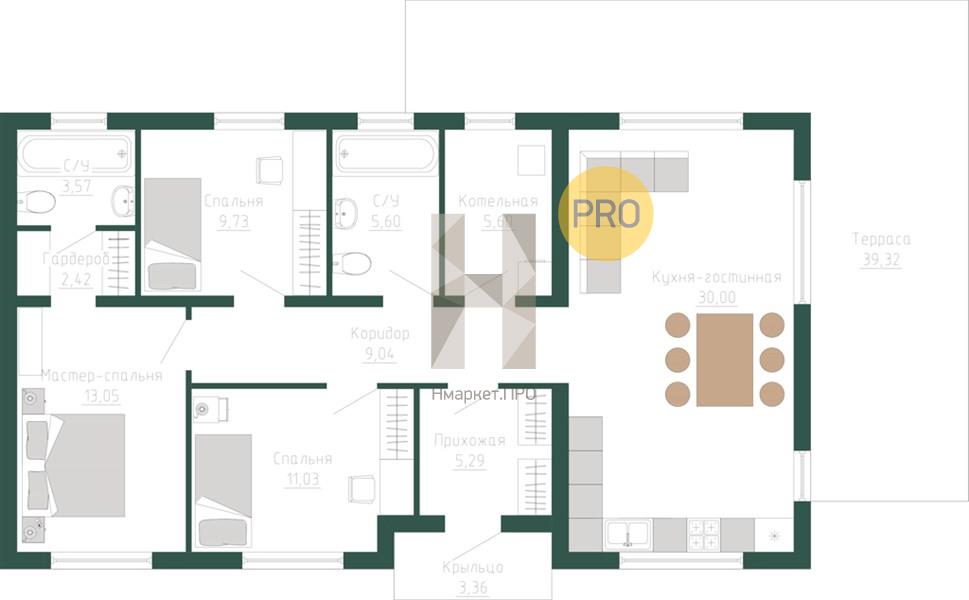 | Общая площадь: | 100.00 м2 |