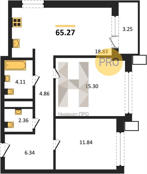 | Общая площадь: | 65.27 м2 |