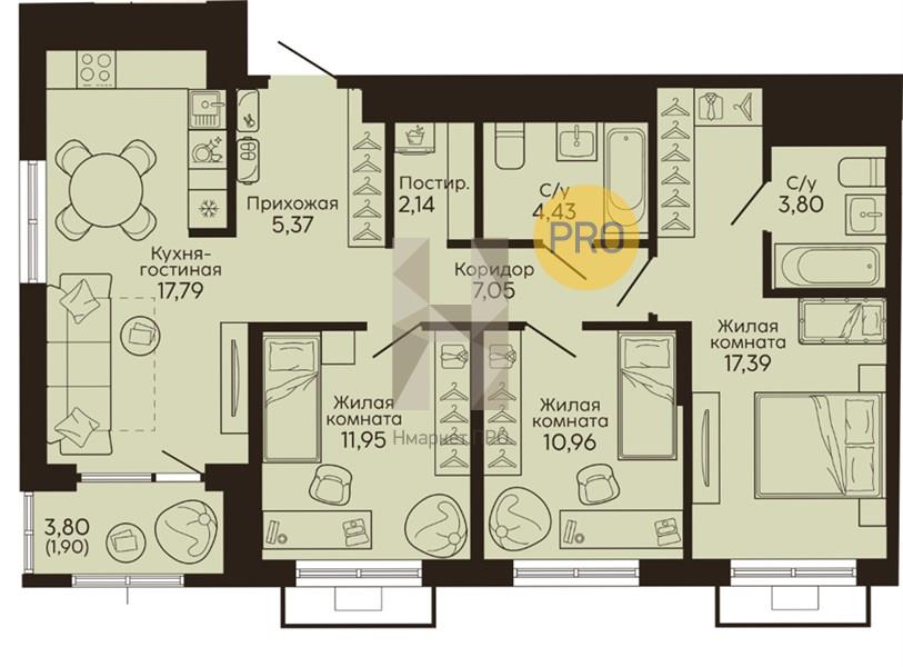 | Площадь кухни: | 17.79 м2 |