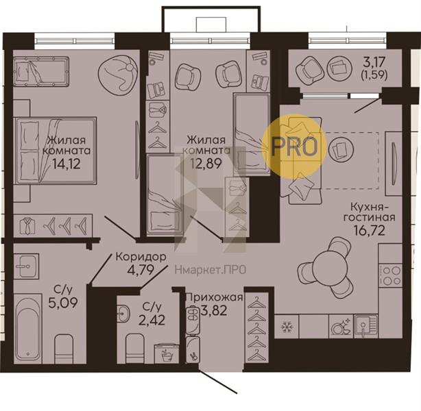 | Площадь кухни: | 16.72 м2 |