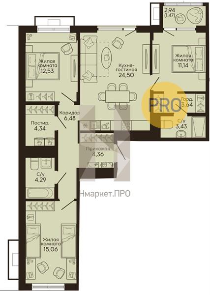 Квартира: 3 к 91,24 кв.м., 2 этаж в комплексе Тихий центр, 1 очередь, корп.2, сдача: 4кв. , этажей: 18, адрес Екатеринбург г., Челюскинцев ул., д. 2, Застройщик: Синара.