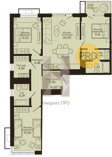 Квартира: 3 к 90,83 кв.м., 5 этаж в комплексе Тихий центр, 1 очередь, корп.2, сдача: 4кв. , этажей: 18, адрес Екатеринбург г., Челюскинцев ул., д. 2, Застройщик: Синара.