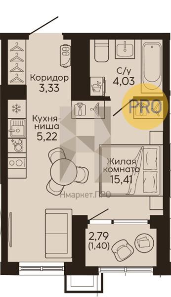 Студия: 29,39 кв.м., 2 этаж в комплексе Тихий центр, 1 очередь, корп.2, сдача: 4кв. , этажей: 18, адрес Екатеринбург г., Челюскинцев ул., д. 2, Застройщик: Синара.