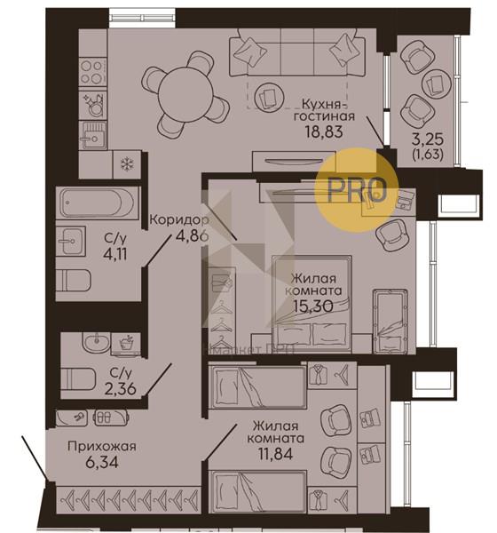 | Площадь кухни: | 18.83 м2 |