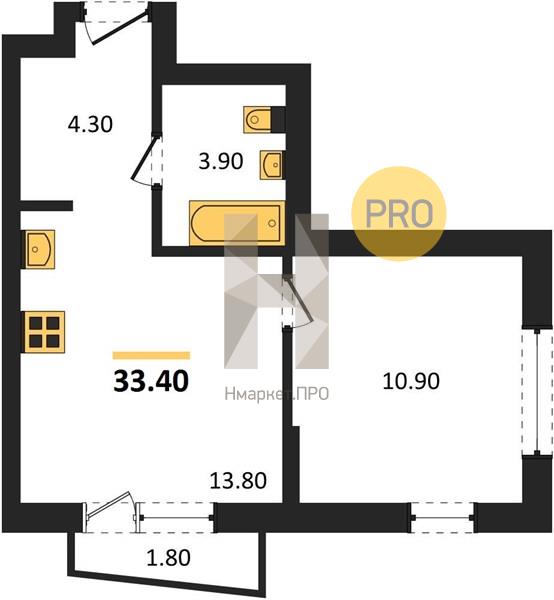 | Общая площадь: | 33.40 м2 |
