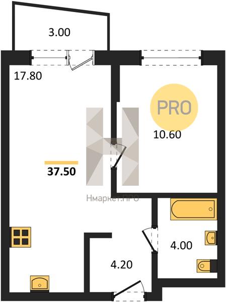 Квартира: 1 к 37,50 кв.м., 2 этаж в комплексе Солнечный, 6 очередь, корп.11.1, сдача: 4кв. , этажей: 15, адрес Екатеринбург г., Чемпионов ул., , Застройщик: ГК ЭТАЛОН.