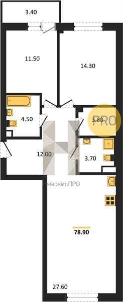 | Общая площадь: | 78.70 м2 |
