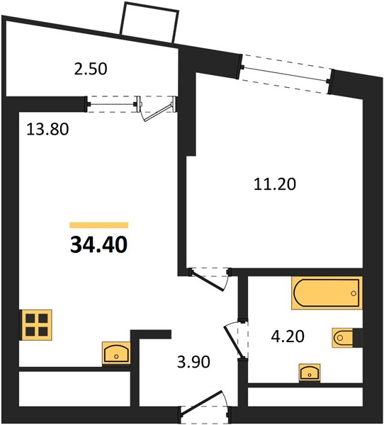 | Общая площадь: | 34.40 м2 |