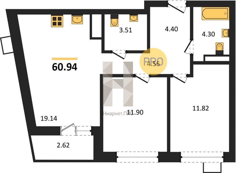 | Площадь кухни: | 19.14 м2 |