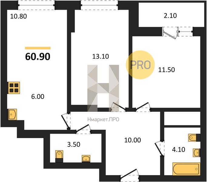 | Общая площадь: | 60.10 м2 |