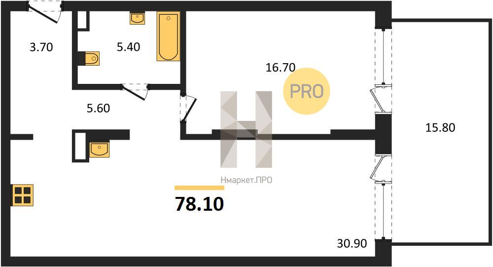 | Общая площадь: | 78.10 м2 |