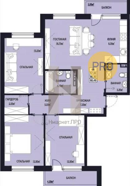 Квартира: 3 к 86,30 кв.м., 1 этаж в комплексе Самоцветы Урала, 2 очередь, корп.3, сдача: 2кв. , этажей: 9, адрес Ревда г., Интернационалистов ул., д. 44, корпус 3, Застройщик: ССК.