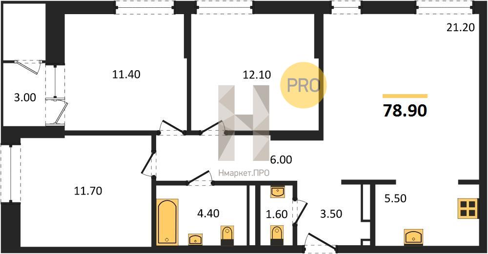 Квартира: 3 к 78,90 кв.м., 15 этаж в комплексе Жилой дом 7Я, 1 очередь, корп.1, сдача: 4кв. , этажей: 18, адрес Екатеринбург г., Александровская ул., д. 3А, Застройщик: РС-Девелопмент.