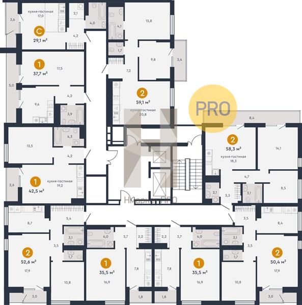 В ЖК представлен весь спектр планировок, от студий до трехкомнатных квартир. Правильные прямоугольные пропорции комнат, отсутствие избыточных мест под коридоры, соблюден баланс между общей и жилой площадью.