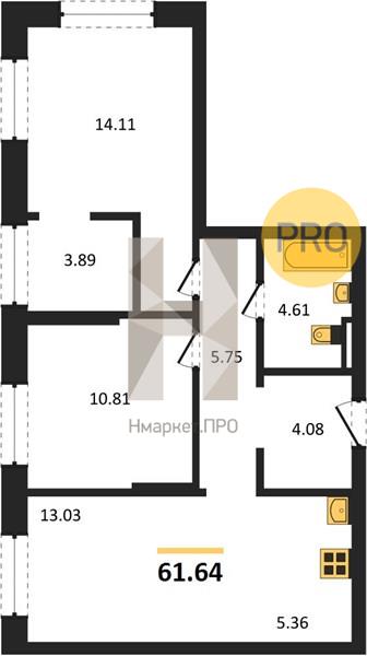Квартира: 2 к 61,64 кв.м., 10 этаж в комплексе Уральский сад, 1 очередь, корп.Квартал Заповедный, корпус 2, сдача: 2кв. , этажей: 20, адрес Совхозный п., Комбинатская ул., , Застройщик: Страна Девелопмент.