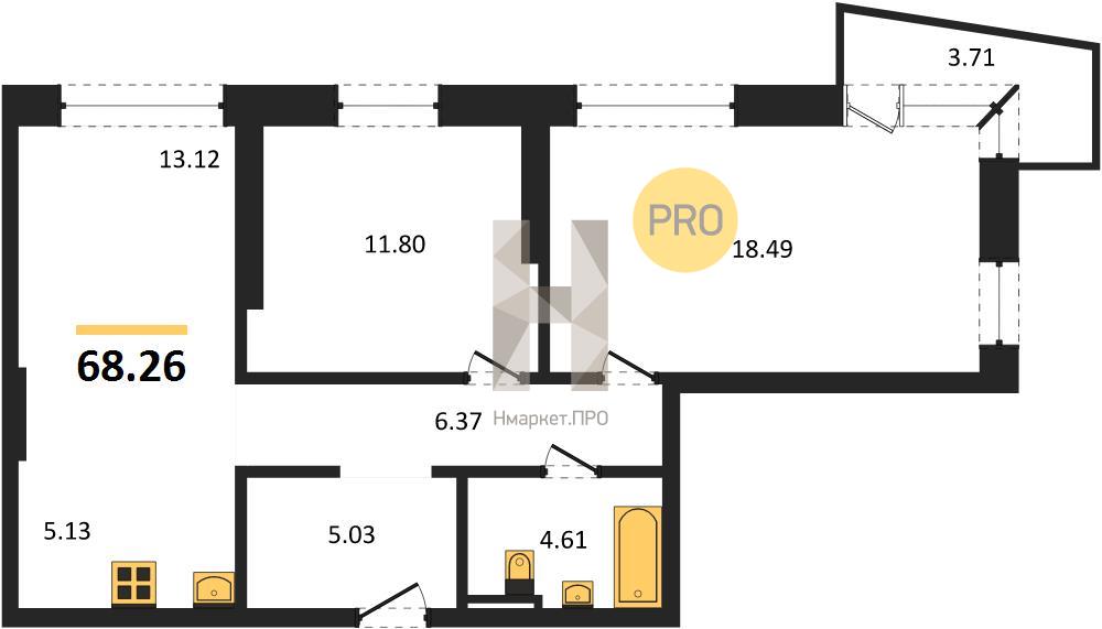 | Общая площадь: | 68.26 м2 |