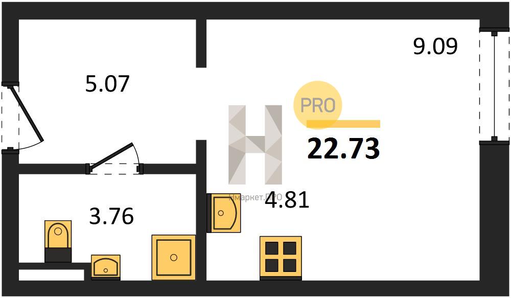 Студия: 22,73 кв.м., 8 этаж в комплексе Уральский сад, 1 очередь, корп.Квартал Заповедный, корпус 1, сдача: 2кв. , этажей: 24, адрес Совхозный п., Комбинатская ул., , Застройщик: Страна Девелопмент.