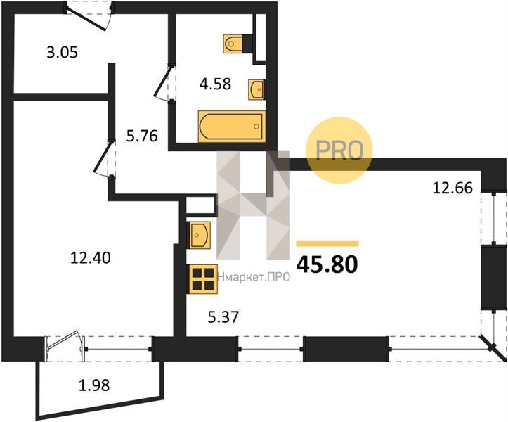 | Общая площадь: | 45.80 м2 |