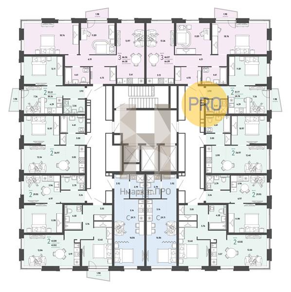 Квартира: 2 к 66,87 кв.м., 12 этаж в комплексе Уральский сад, 1 очередь, корп.Квартал Заповедный, корпус 2, сдача: 2кв. , этажей: 20, адрес Совхозный п., Комбинатская ул., , Застройщик: Страна Девелопмент.