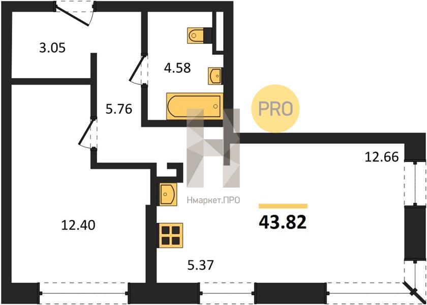 Квартира: 1 к 43,82 кв.м., 15 этаж в комплексе Уральский сад, 1 очередь, корп.Квартал Заповедный, корпус 2, сдача: 2кв. , этажей: 20, адрес Совхозный п., Комбинатская ул., , Застройщик: Страна Девелопмент.