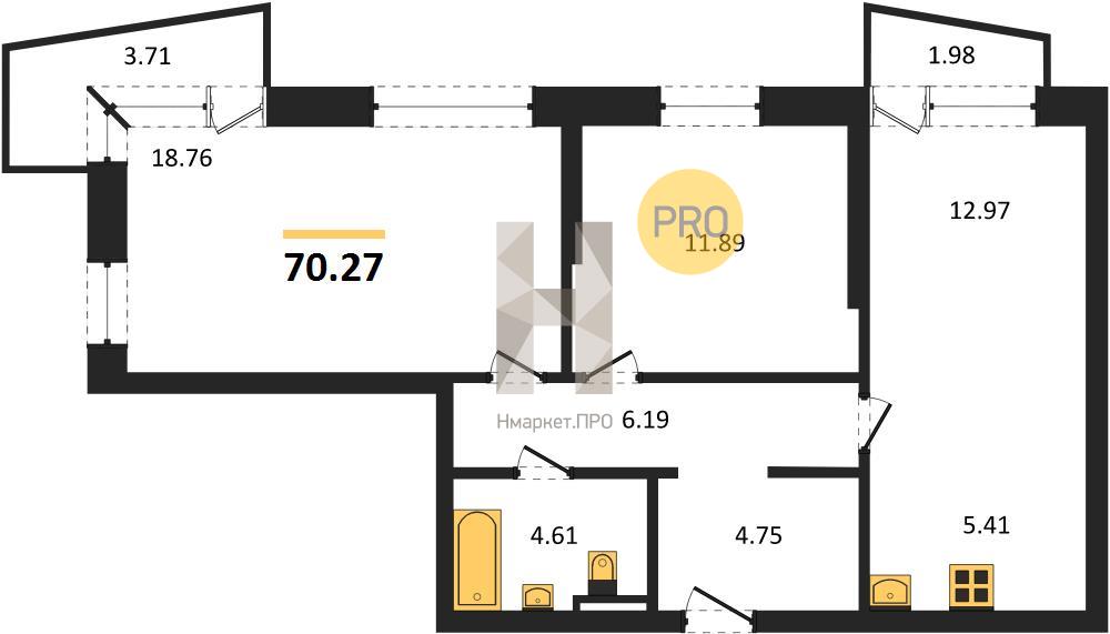 Квартира: 2 к 70,27 кв.м., 15 этаж в комплексе Уральский сад, 1 очередь, корп.Квартал Заповедный, корпус 2, сдача: 2кв. , этажей: 20, адрес Совхозный п., Комбинатская ул., , Застройщик: Страна Девелопмент.