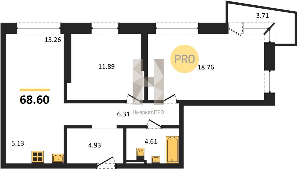 Квартира: 2 к 68,60 кв.м., 18 этаж в комплексе Уральский сад, 1 очередь, корп.Квартал Заповедный, корпус 2, сдача: 2кв. , этажей: 20, адрес Совхозный п., Комбинатская ул., , Застройщик: Страна Девелопмент.