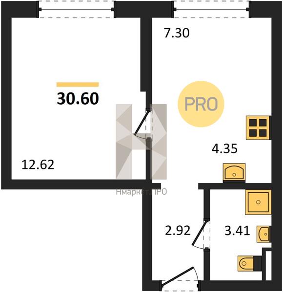 | Общая площадь: | 30.60 м2 |