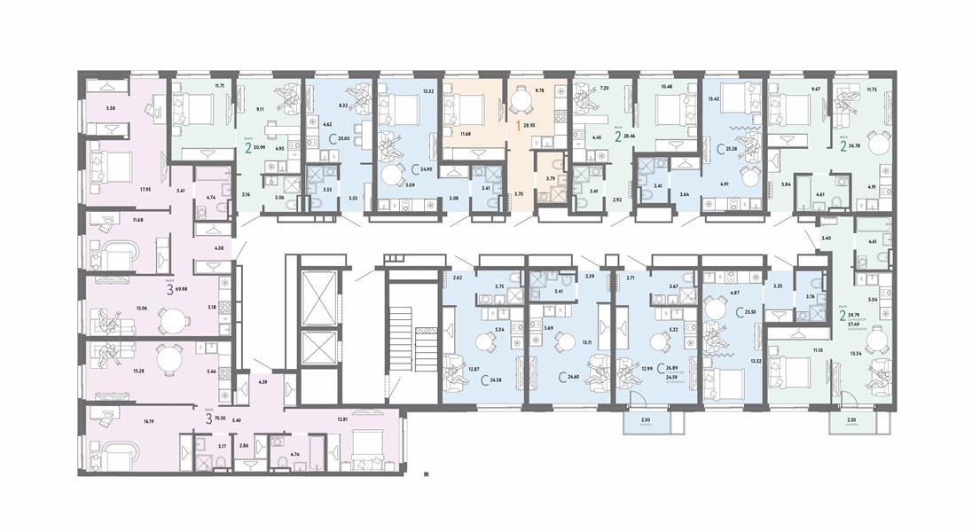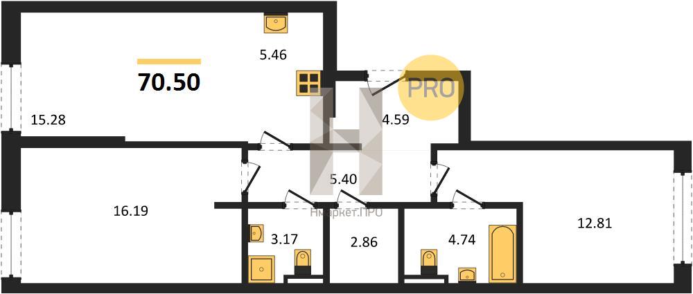 Квартира: 2 к 70,50 кв.м., 6 этаж в комплексе Уральский сад, 1 очередь, корп.Квартал Заповедный, корпус 1, сдача: 2кв. , этажей: 24, адрес Совхозный п., Комбинатская ул., , Застройщик: Страна Девелопмент.