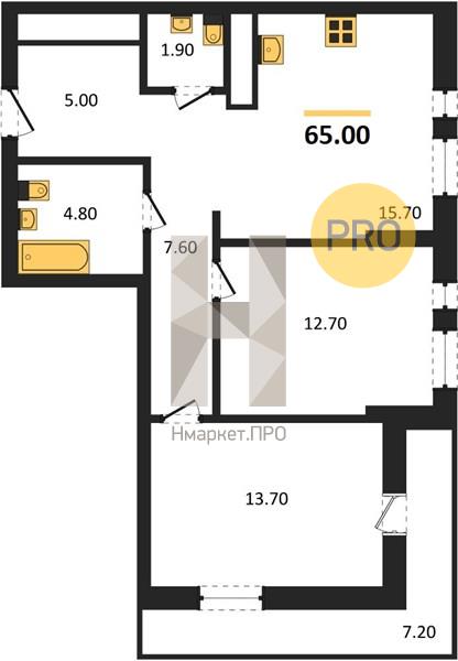 Квартира: 2 к 65,00 кв.м., 6 этаж в комплексе Галактика, 1 очередь, корп.1, сдача: 3кв. , этажей: 18, адрес Екатеринбург г., Космонавтов пр., , Застройщик: Ривьера-Инвест-Екб.