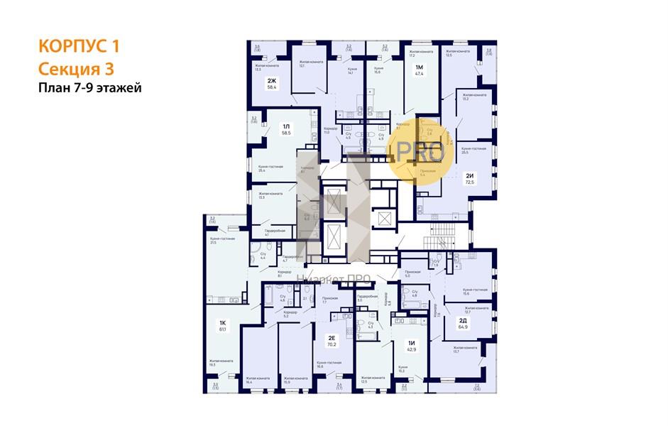 Квартира: 2 к 72,50 кв.м., 7 этаж в комплексе Галактика, 1 очередь, корп.1, сдача: 3кв. , этажей: 18, адрес Екатеринбург г., Космонавтов пр., , Застройщик: Ривьера-Инвест-Екб.