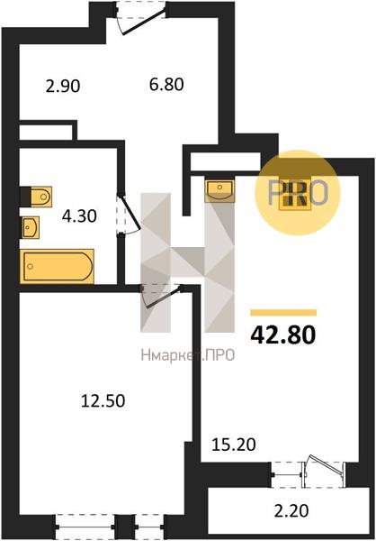 | Общая площадь: | 42.80 м2 |