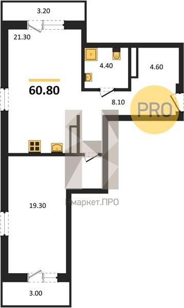 | Общая площадь: | 60.80 м2 |