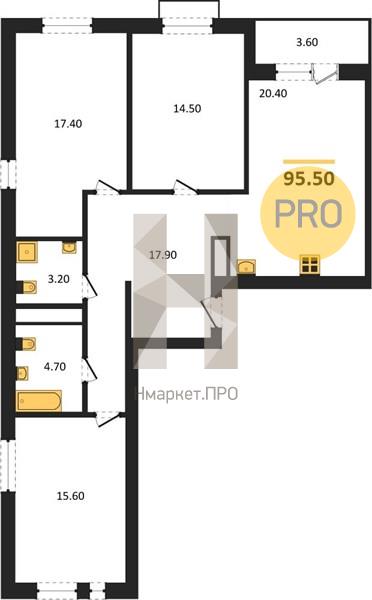| Общая площадь: | 95.50 м2 |