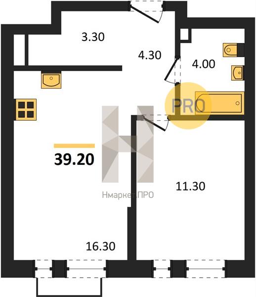 Квартира: 1 к 39,20 кв.м., 2 этаж в комплексе Галактика, 1 очередь, корп.1, сдача: 3кв. , этажей: 18, адрес Екатеринбург г., Космонавтов пр., , Застройщик: Ривьера-Инвест-Екб.