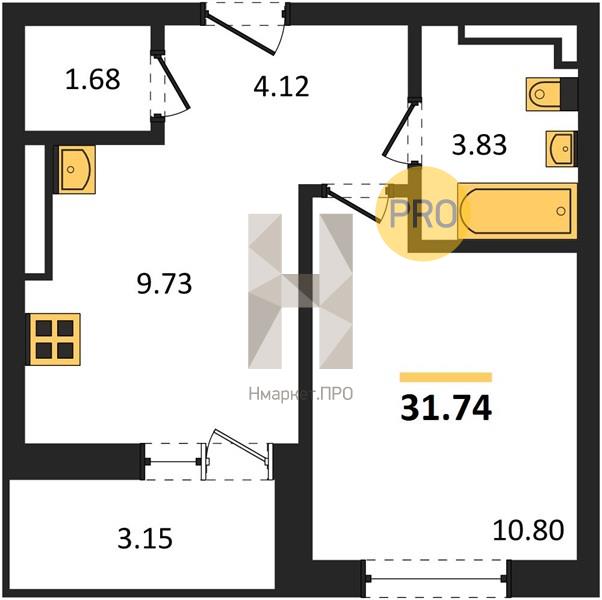 Квартира: 1 к 31,74 кв.м., 9 этаж в комплексе Радиостанция, 1 очередь, корп.1, сдача: 3кв. , этажей: 20, адрес Екатеринбург г., Космонавтов пр., , Застройщик: СЗ Радиостанция.