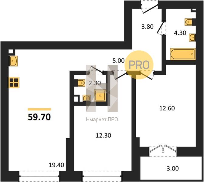 | Общая площадь: | 59.70 м2 |