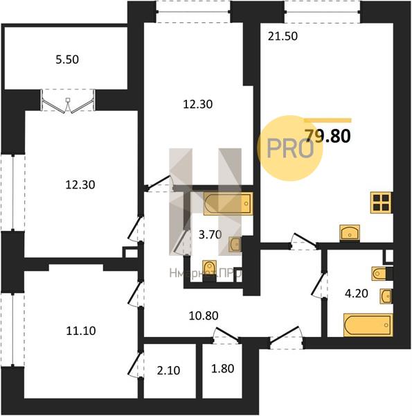 Квартира: 3 к 79,80 кв.м., 29 этаж в комплексе Голос.Заря, 1 очередь, корп.А, сдача: 3кв. , этажей: 30, адрес Екатеринбург г., Космонавтов пр., д. 1 стр, Застройщик: Голос.Девелопмент.