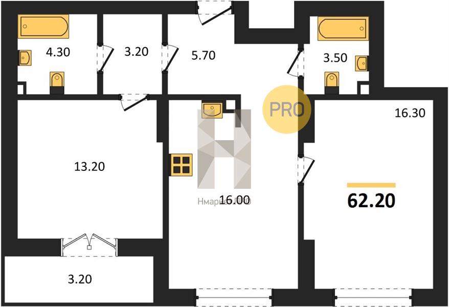 | Общая площадь: | 62.20 м2 |