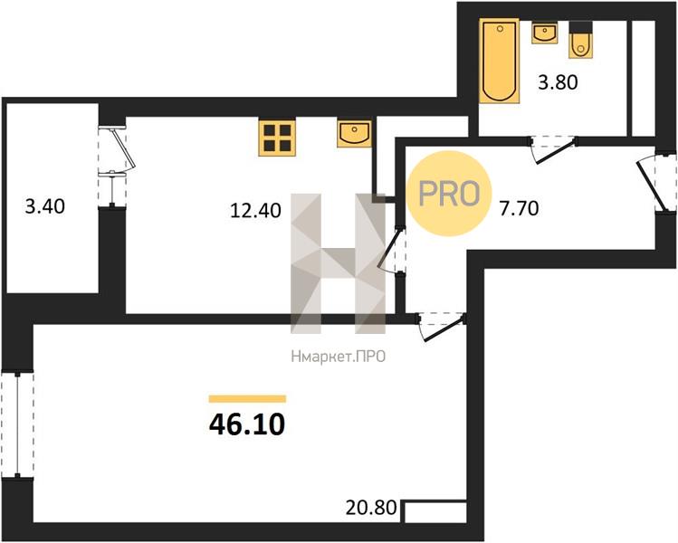 | Общая площадь: | 46.10 м2 |