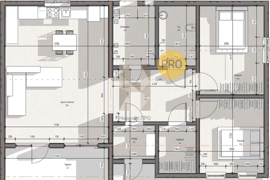 Квартира: 2 к 100,00 кв.м., 1 этаж в комплексе Красоты, 1 очередь, корп.Проект Ferma 100, сдача: 4кв. , этажей: 1, адрес Красоты коттедж.п., Красивый пр., , Застройщик: СК Ферма.