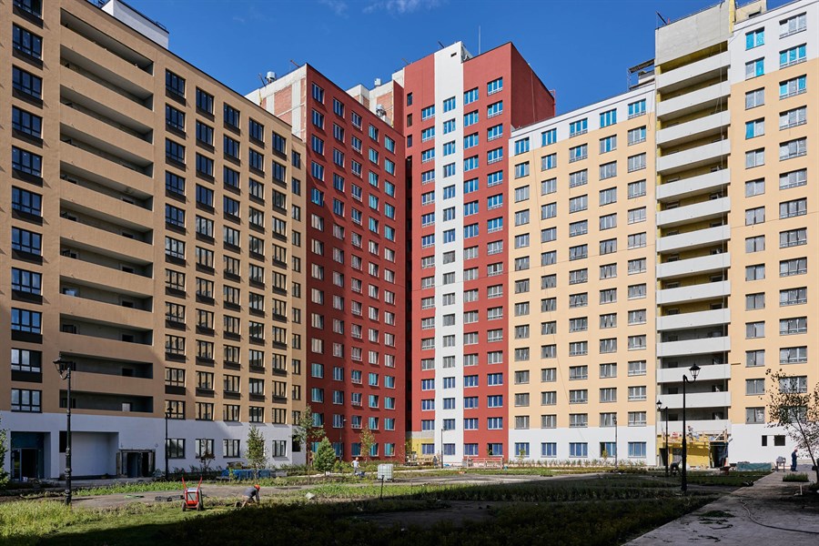 Во дворе жилого комплекса четыре детских площадки, муниципальный детский сад и два спортивных корта. Вместе с башней появится площадка для стритбола.