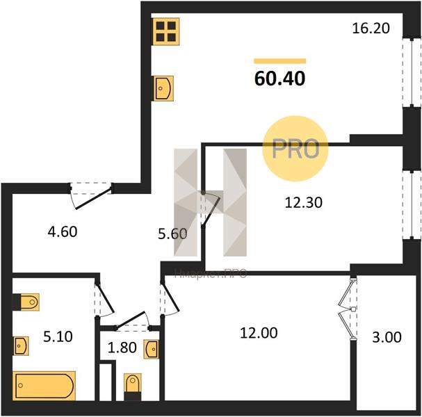 | Площадь кухни: | 16.20 м2 |